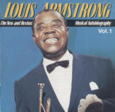 with his cornet, Louis Armstrong stands to the right of